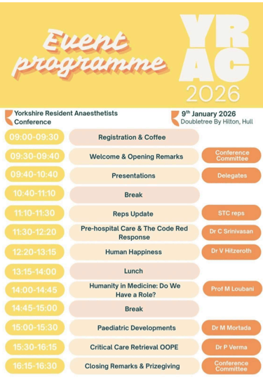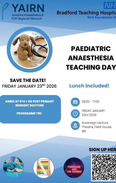 The Yorkshire Anaesthetics Trainee Conference is an annual conference for trainees with an exciting programme and trainee presentations. Next YATC is 9th January 2026, DoubleTree by Hilton, Hull.