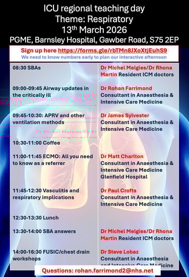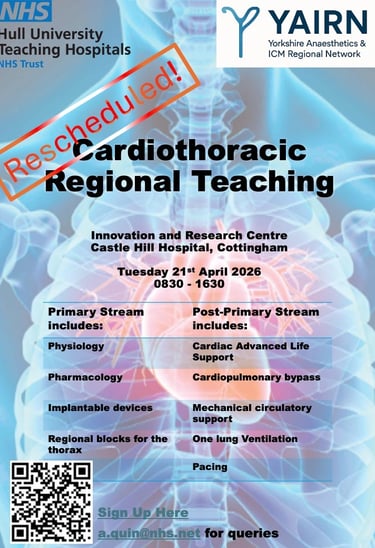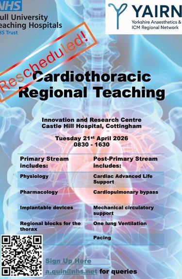 Sheffield Cardiothoracic Intensive Care and Anaesthesia teaching: monthly teaching both in person and virtually. Please see school calender for dates and links to teams meetings